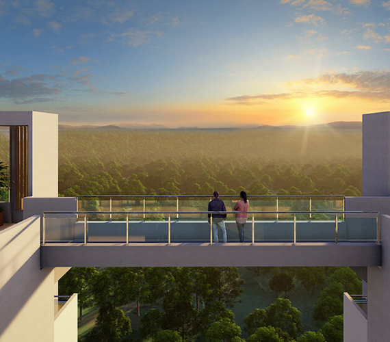 Rise above the mundane, everyday life and seek something extraordinary. This immersive and rejuvenating lifestyle at Aros, Life Republic, includes a thoughtfully designed 19,000 sq.ft. Club Aros, a mesmerizing 2.6-acre Nature's Nest where you can connect with Mother Earth, and a stunning Sky Trail at a height of 70 meters—bringing nature, wellness, and recreation together in one place.